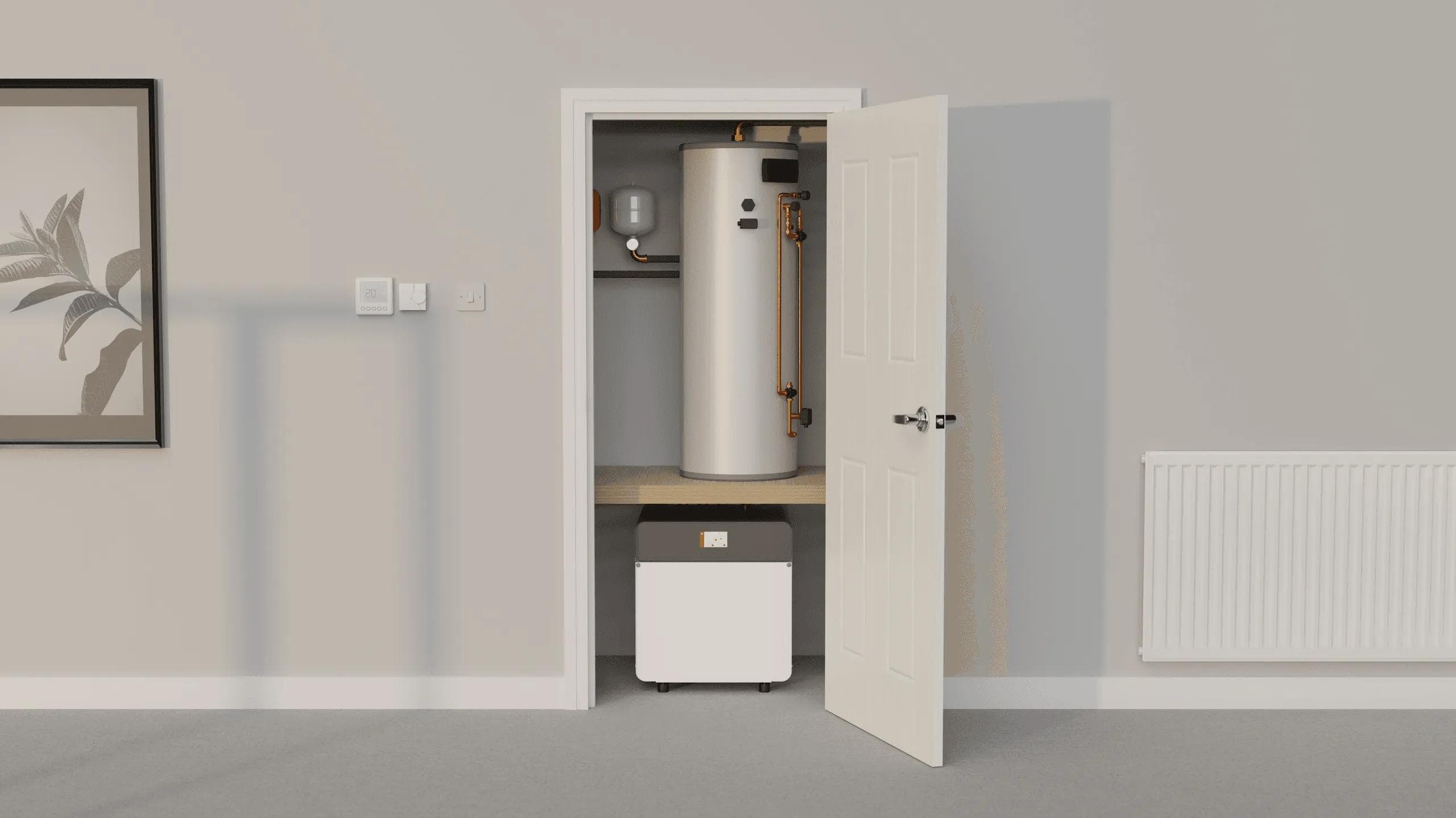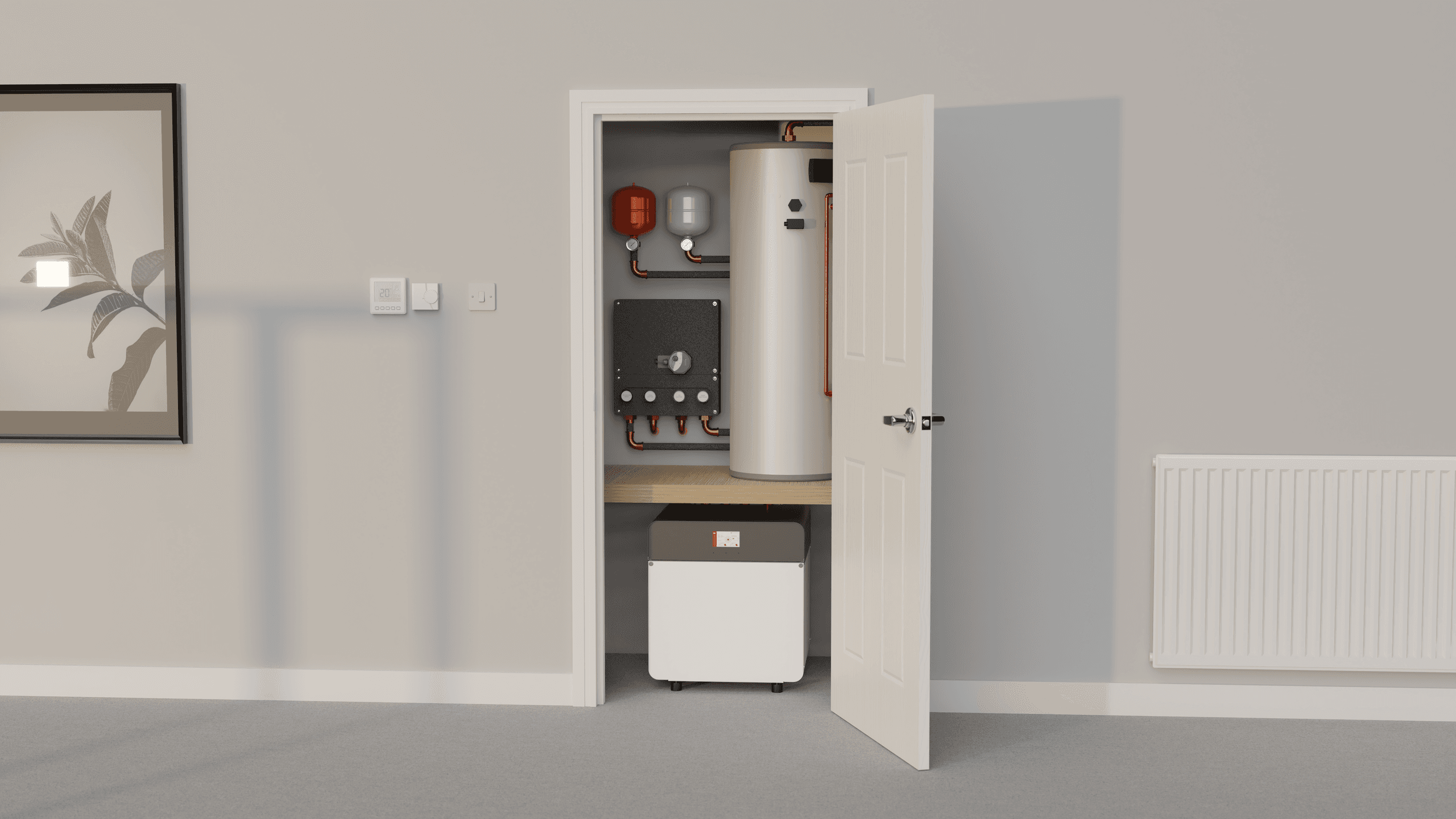 Kensa’s Passive Cooling Module is a simple add-on for the Shoebox heat pump. It includes the wiring and control components needed to enable passive cooling, and can be installed with new systems or retrofitted. For Evo heat pump models, a plate heat exchanger delivers the same benefit.