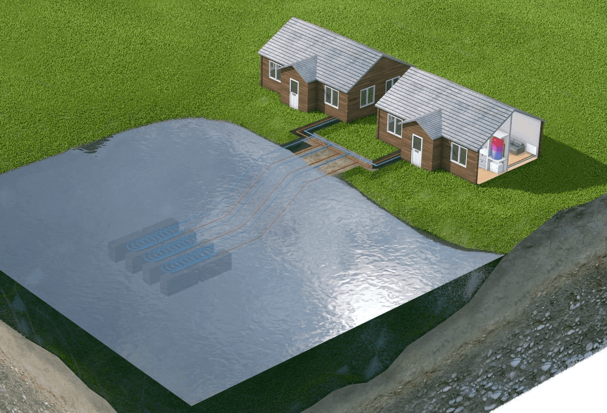 There are three main types of ground source heat pump installations using different ground arrays. These ground arrays are defined as slinkies, boreholes, and pond mats.