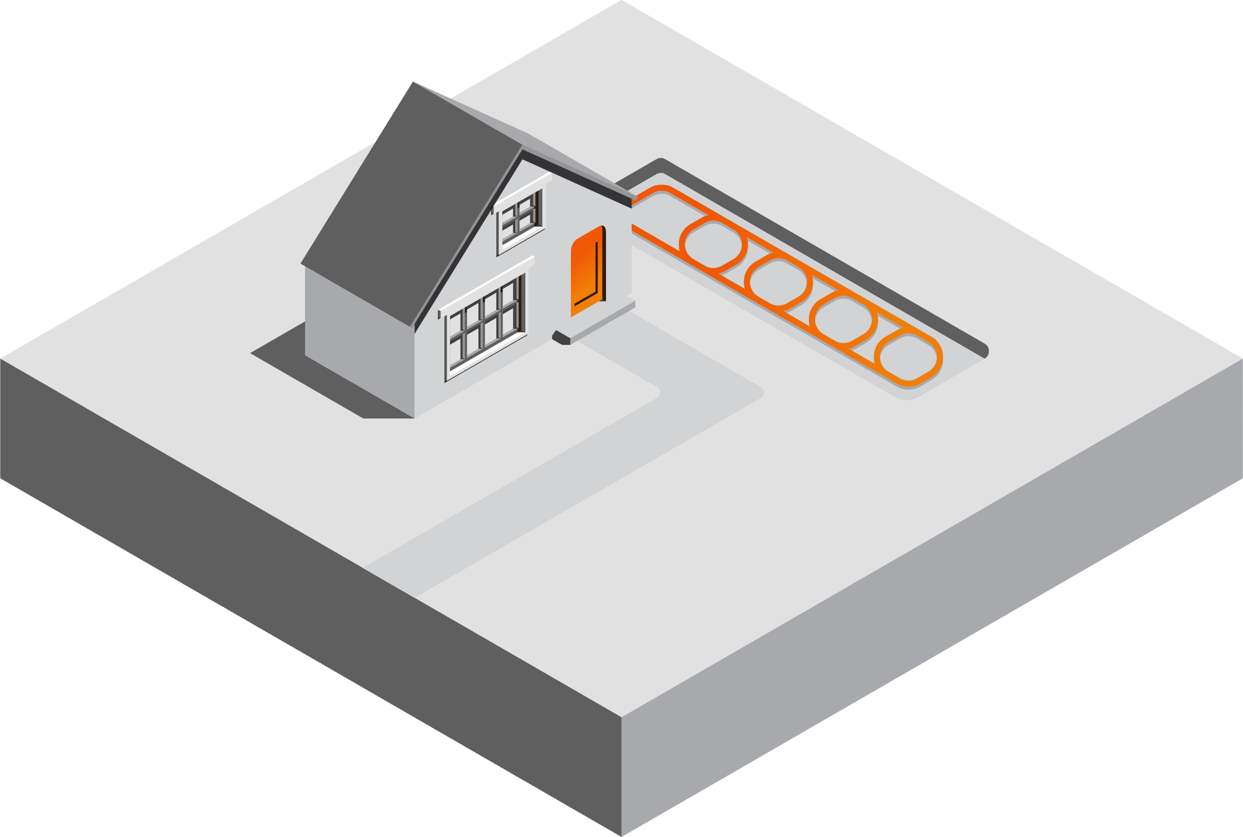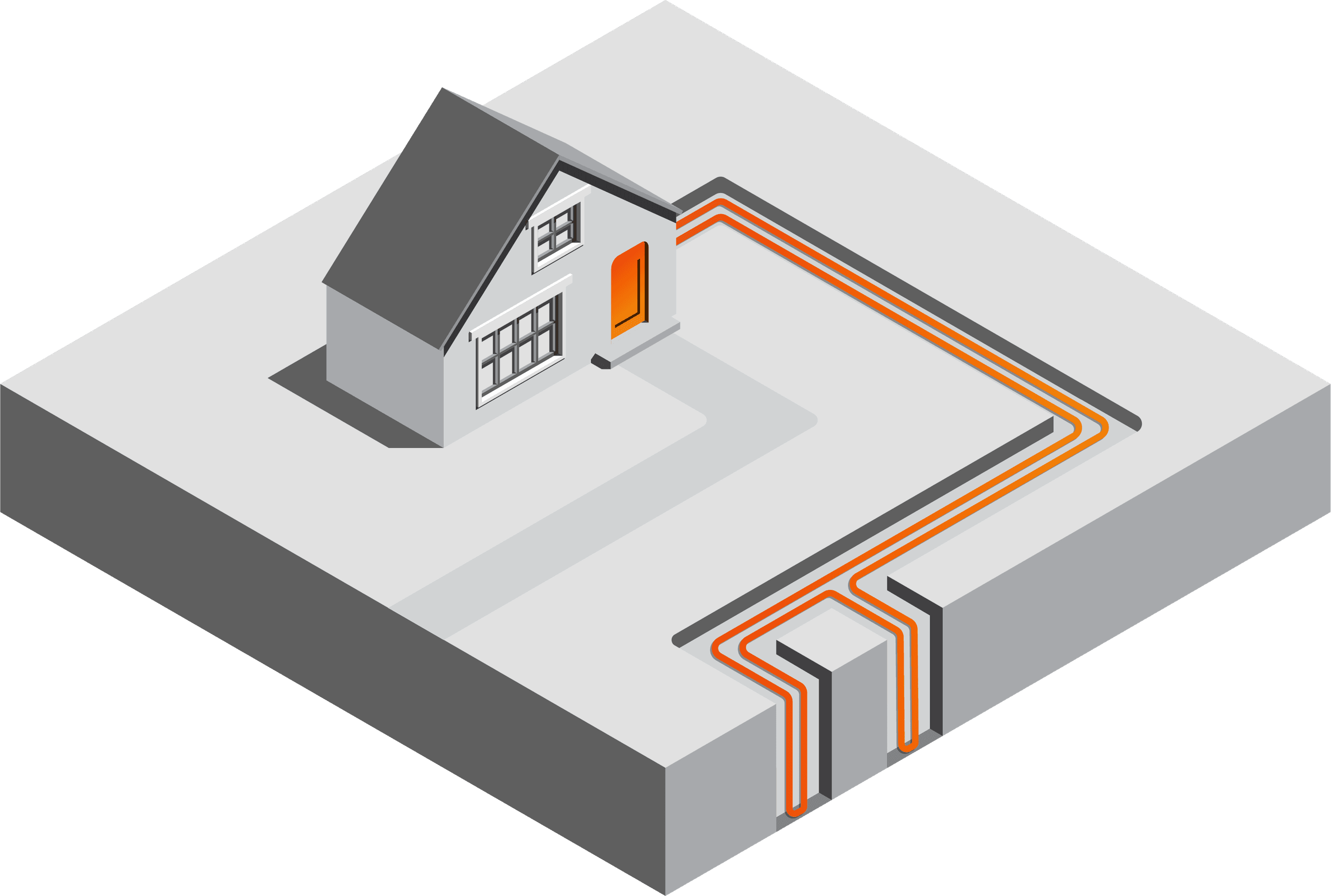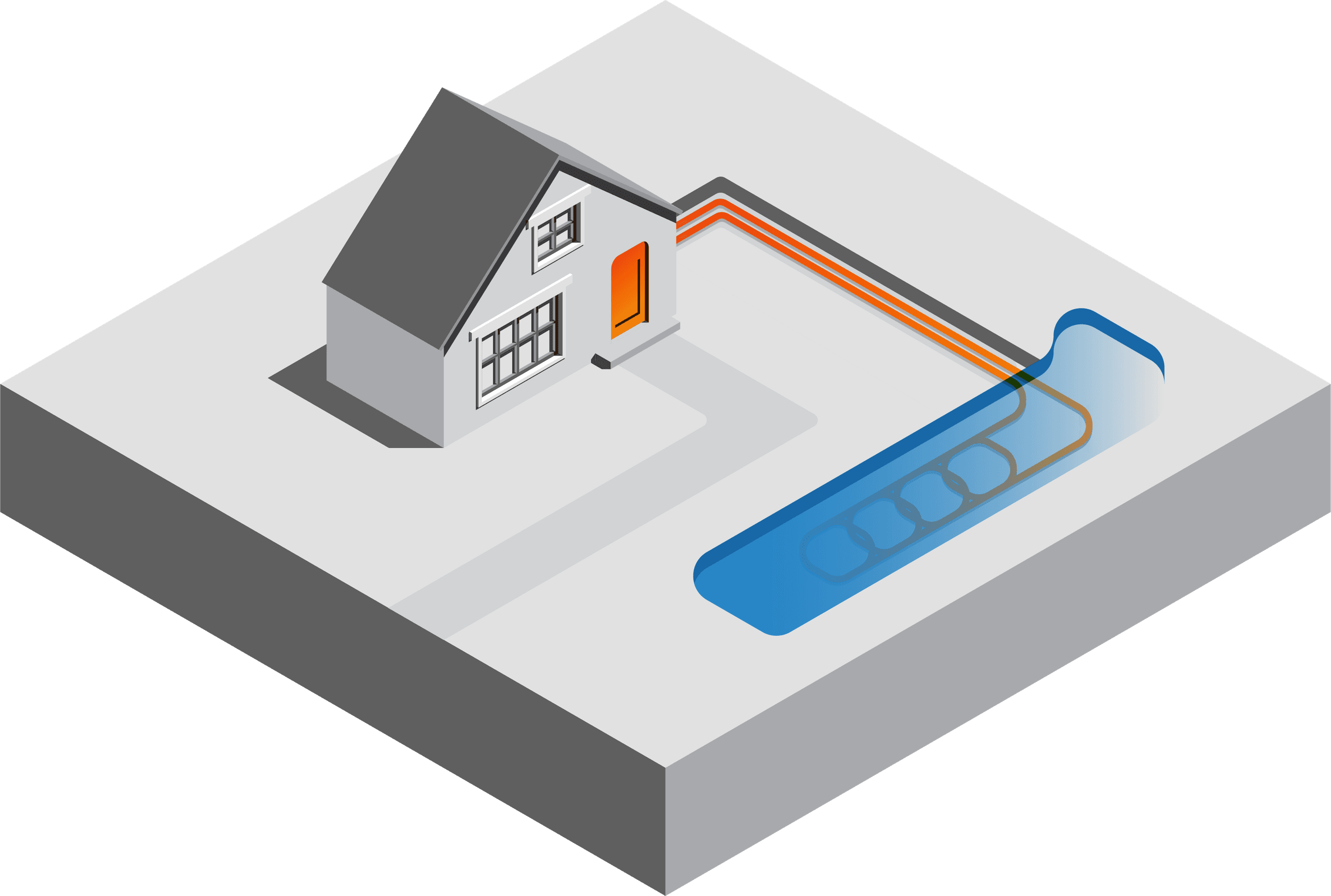 Ground source heat pumps work by extracting naturally occurring heat from the ground that is constantly replenished by solar energy and rainfall – effectively creating your very own natural energy battery. The heat pump compresses this energy into high-grade heat that is used to provide your home with heating and hot water.