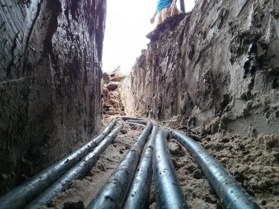 Trenches are dug in the property’s surrounding space, such as the back garden.
