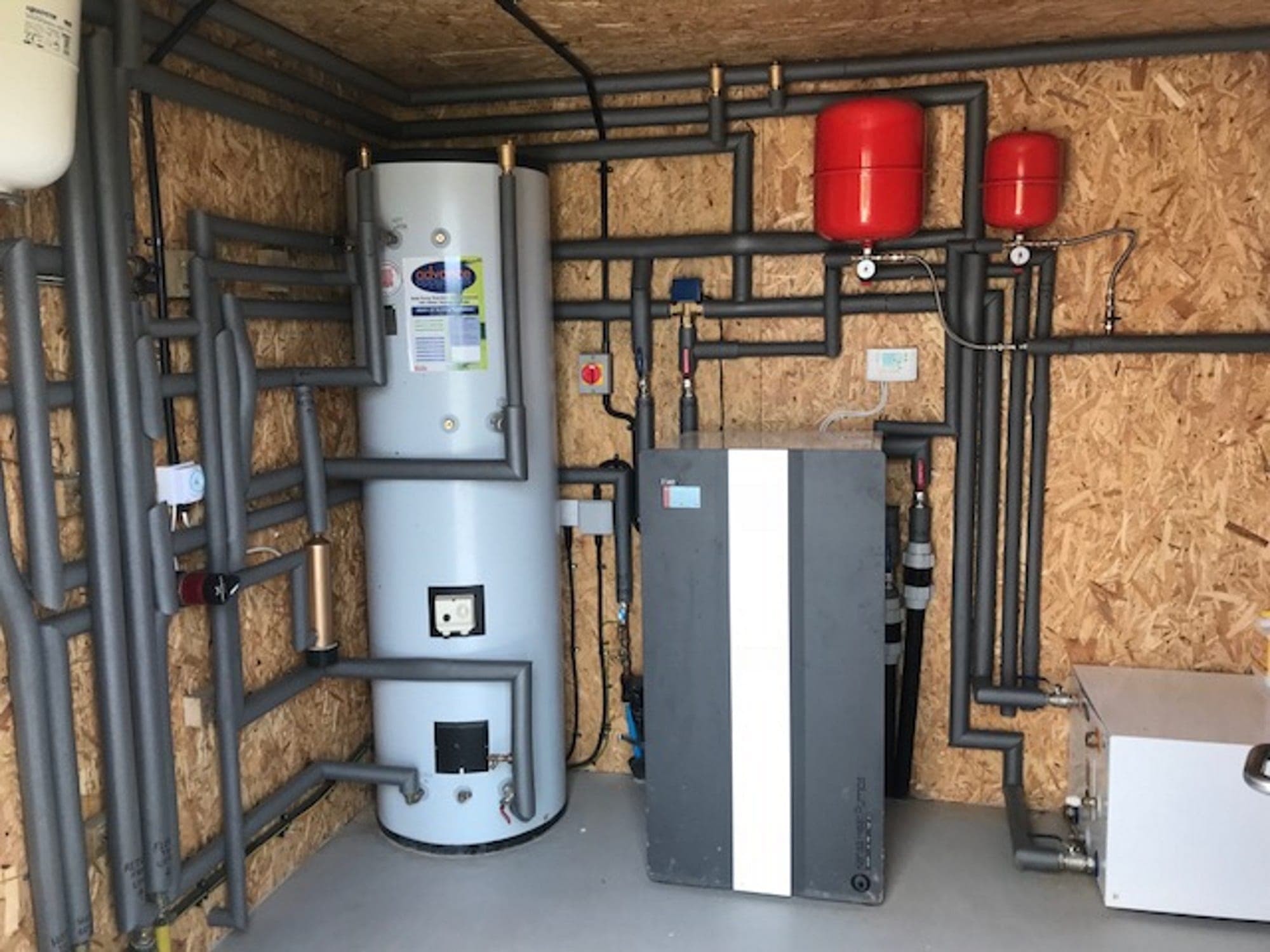 - Check fluid pressure. Both the ground side and the heating side pressures should read higher than 1.8 Bar. You can top up the ground pressure side using the built-in filling valve which is on the right hand side towards the back or underneath the heat pump. The heating fluid pressure will be topped up by whatever system the original installer used. Typically there will be a filling loop somewhere near the expansion vessel.